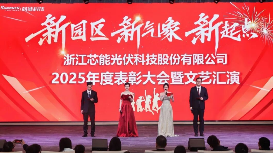2026年2月6日下午,浙江芯能光伏科技股份有限公司“新園區,新氣象,新起點”2025年度年會在喜慶昂揚的氛圍中隆重舉行。全體同仁齊聚一堂、共敘華章,回顧過往奮斗征程,擘畫未來嶄新藍圖,共同迎接這場凝聚共識、鼓舞人心的年度盛典。