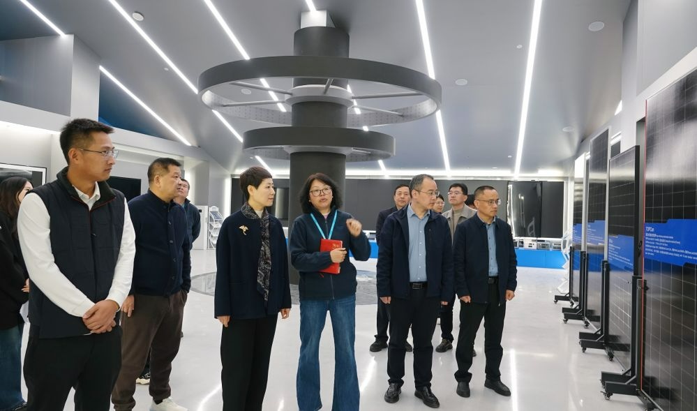 公司領導首先向楊琳琳主席一行介紹了企業發展概況,以及在分布式光伏、戶儲領域的產業布局與最新成果。隨后,訪客們走進展廳實地觀摩儲能及光伏組件產品,業務負責人結合產品特性,重點闡述了儲能行業的發展前景及公司技術創新的方向。